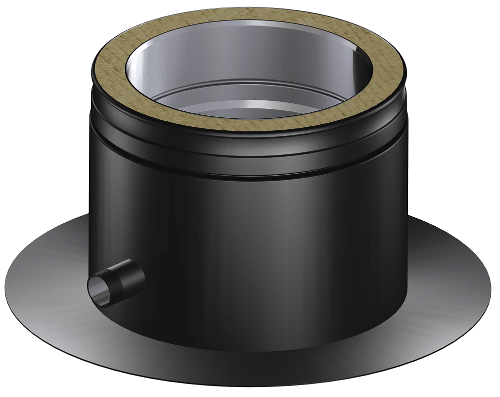 This Dinak DW Design 5″ (130mm) Black Base Plate With Drain is part of the Dinak DW Design System, which is a twin wall flue chimney system manufactured in Europe. Suitable for all types of applications: wood, pellets, gas, gas oil and condensing oil. This Dinak DW Design 5″ (130mm) Black Base Plate With Drain is designed to seal the bottom of the flue while allowing condensed moisture and water to drain away.