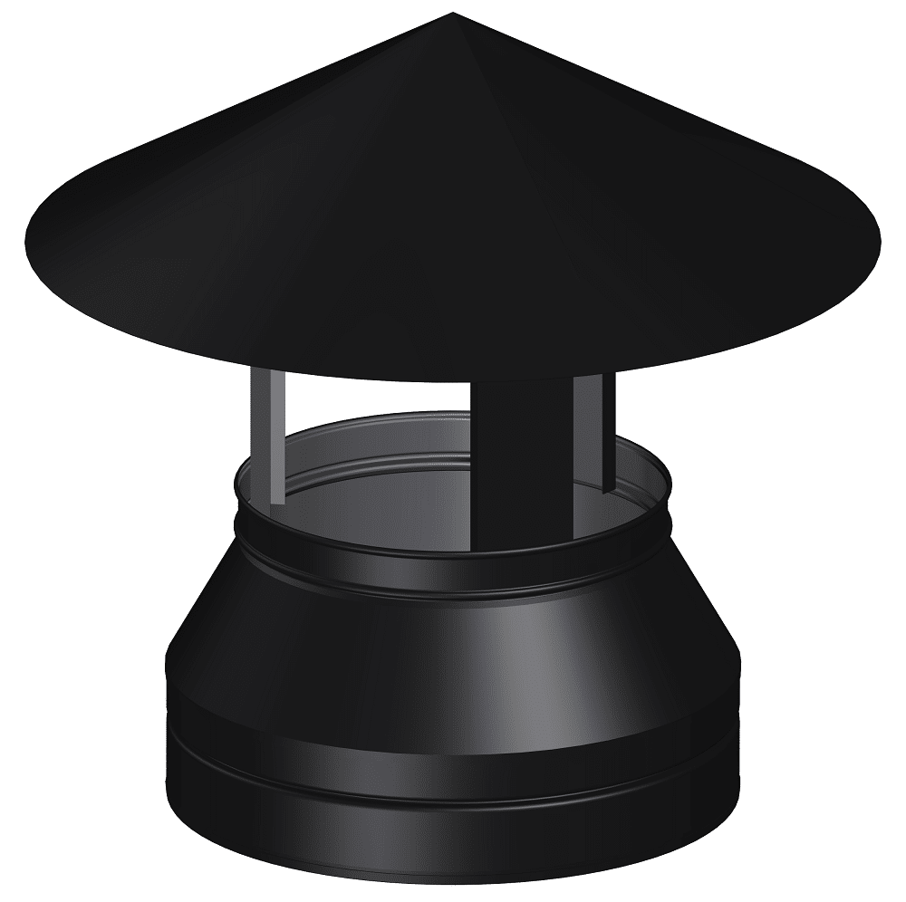 This 5″ (130mm) Black Raincap is part of the Dinak DW Design System, which is a twin wall flue chimney system manufactured in Europe. Suitable for all types of applications: wood, pellets, gas, gas oil and condensing oil. This Black Raincap prevents water ingress and enhances flue draft.