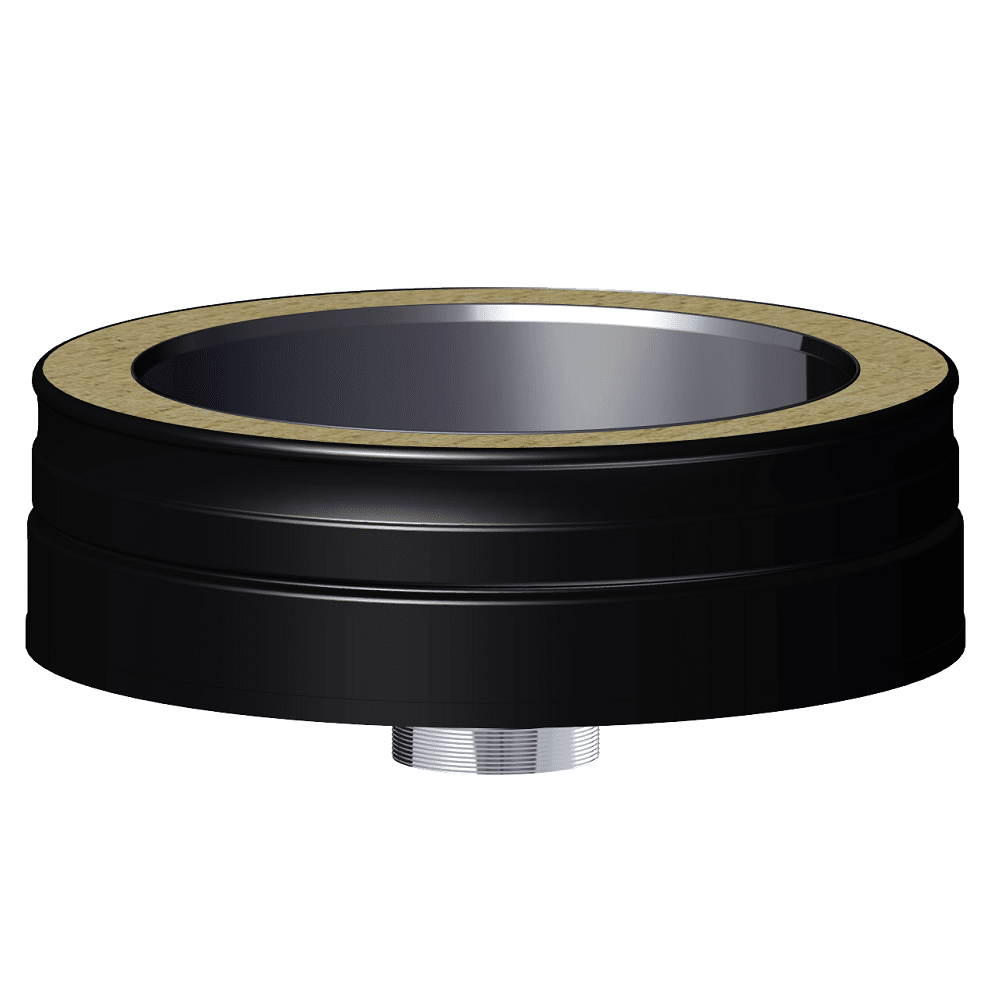 This 6″ (150mm) Diameter Black Soot Collector With Drain is part of the Dinak DW Design System, which is a twin wall flue chimney system manufactured in Europe. Suitable for all types of applications: wood, pellets, gas, gas oil and condensing oil. This additional part to your system collects soot and debris, while providing an easy access point for maintenance.