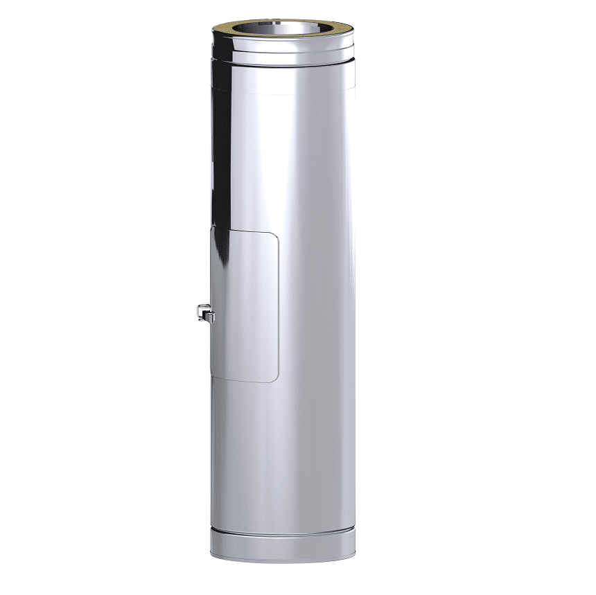 This Dinak DW Design 6″ (150mm) Stainess Steel Inspection Length 460mm is part of the Dinak DW Design System, which is a twin wall flue chimney system manufactured in Europe. Suitable for all types of applications: wood, pellets, gas, gas oil and condensing oil. This straight length forms the main body of your twin wall system and measures 460mm in length, while also including an inspection plate for sweeping and cleaning your system.
