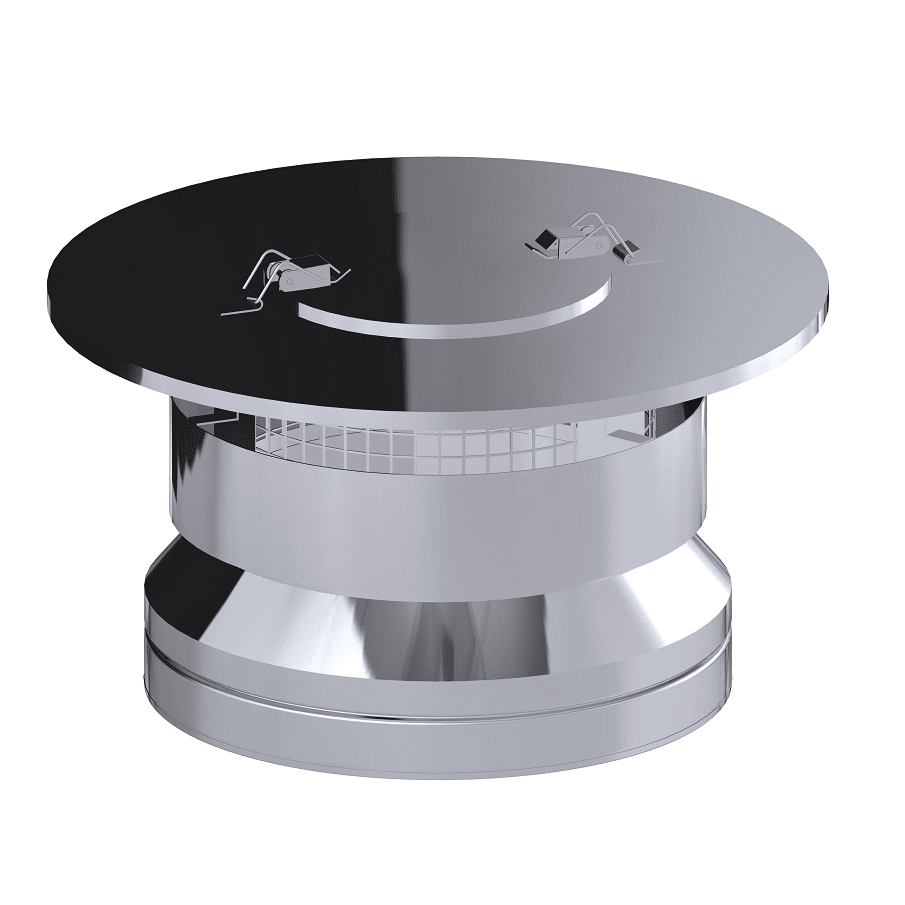 This Dinak DW Design 6″ (150mm) Stainless Steel Mesh Weathering Cap And Inspection Door is part of the Dinak DW Design System, which is a twin wall flue chimney system manufactured in Europe. Suitable for all types of applications: wood, pellets, gas, gas oil and condensing oil. This Mesh Weathering Cap And Inspection Door is used to prevent rain, wind, and debris from entering the chimney while simultaneously reducing downdraught and optimizing the flow of flue gases.