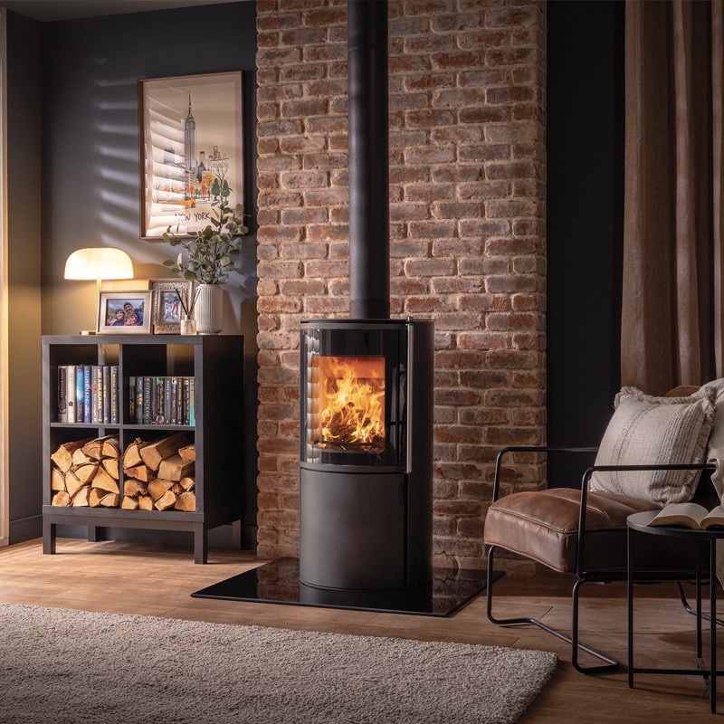 The FireFX Atlas 1 Wood Burning Stove combines sleek Scandinavian design with practical British engineering, offering exceptional value and impressive performance. Its tall cylindrical shape and large curved glass window create a striking centrepiece, delivering a panoramic view of the flames and enhancing both modern and minimalist interiors. Suitable for installation on a 12mm decorative hearth, it fits effortlessly into corners, flat walls, or open-plan spaces.