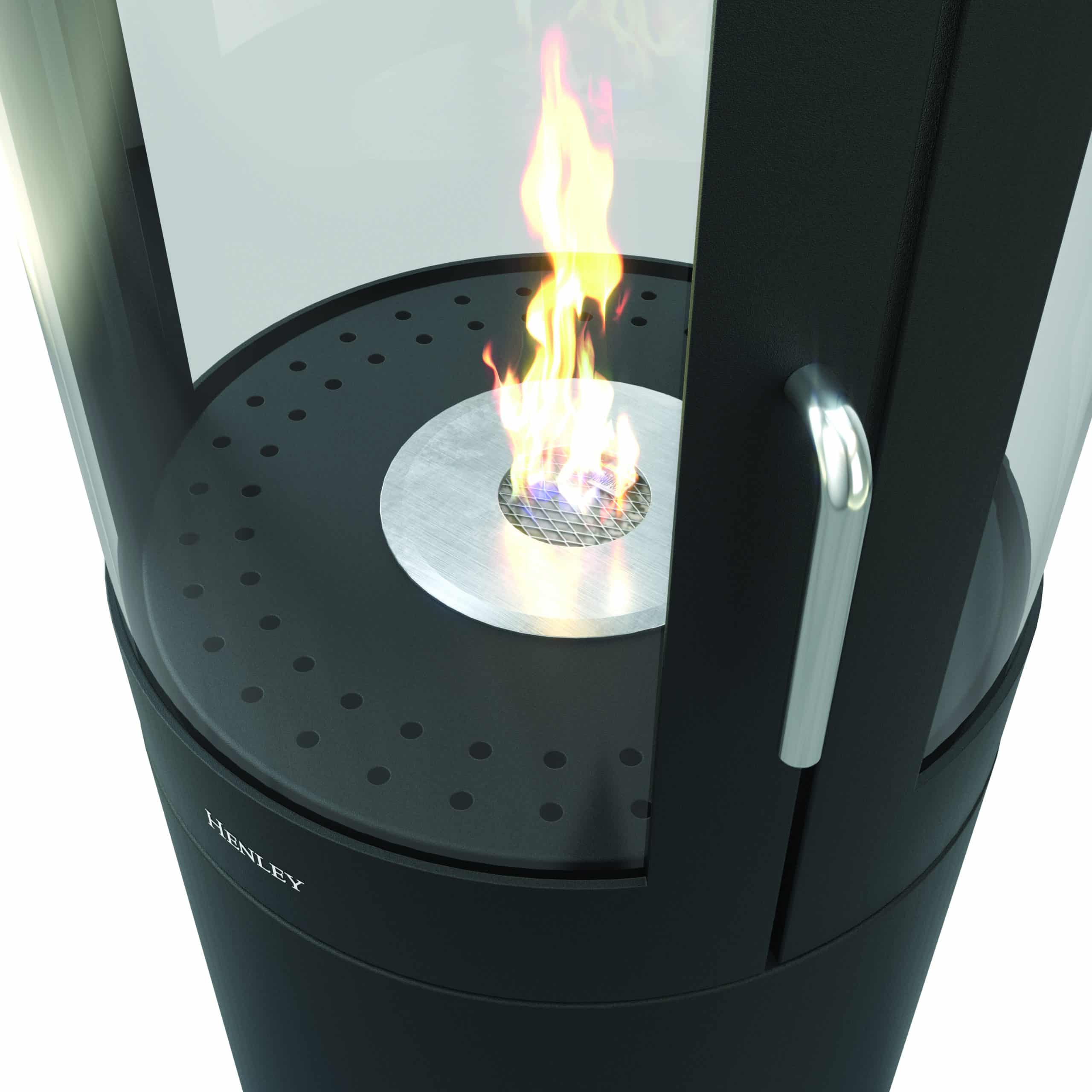 The Berlin stove is designed as a freestanding unit and can be positioned against a flat wall, with the option to install it with or without the decorative pipe. Once lit, the stove should be positioned at least 3cm away from the wall for safe operation. Its sleek cylindrical design is complemented by a three-panel glass exterior, allowing you to enjoy the dancing flames from multiple angles throughout the room.