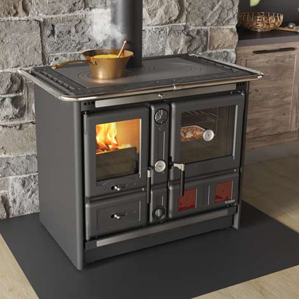 Crafted with enamelled external facings and a polished cast-iron façade and doors, the Termorosa XXL exudes durability and timeless appeal. The double-glazed fire door ensures excellent heat retention while allowing a clear view of the flames, adding warmth and ambience to any kitchen or living space.