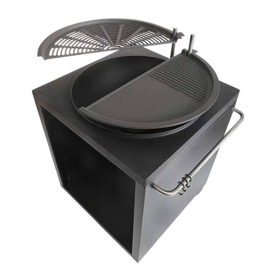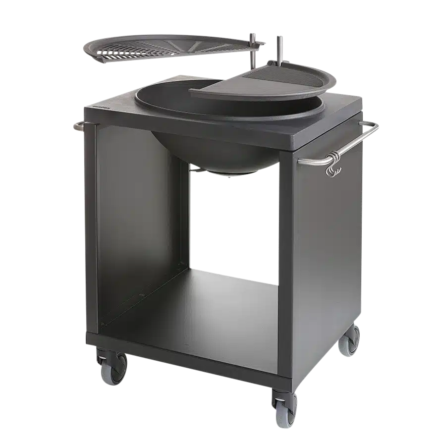 Built for authentic outdoor cooking, the Grill ’17 performs equally well with wood, charcoal or briquettes, delivering rich, smoky flavours enhanced by the natural properties of cast iron. The porous surface absorbs fats and juices during cooking, helping to intensify taste and create consistently delicious results. Whether searing meat over high heat or gently warming vegetables and bread, this grill offers flexibility for both casual meals and more ambitious outdoor entertaining.