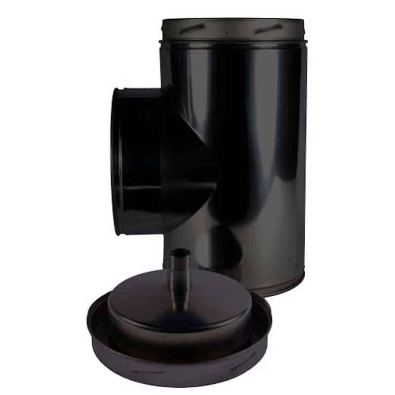 Schiedel 5″ (125mm) Internal Diameter ICID Plus 90 Degree Tee With Drain Cap – Matt Black