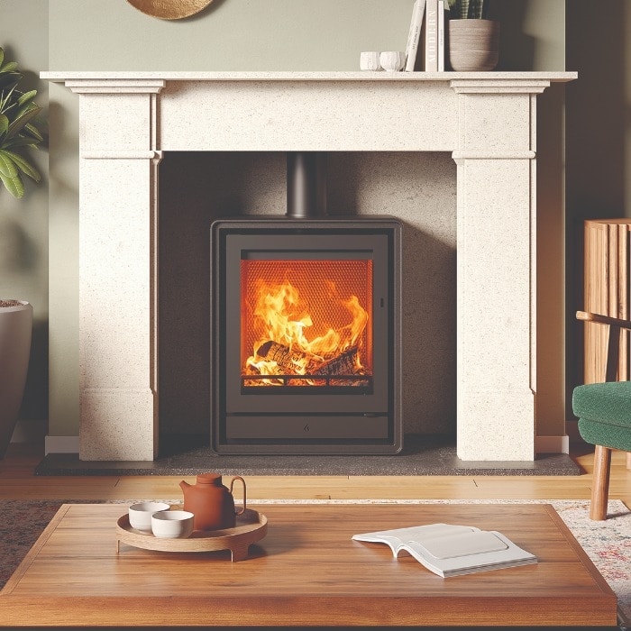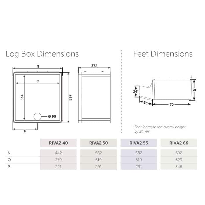 Constructed from high-quality steel with a cast iron grate and log guard, the Riva2 55 is built to last. The DualFlow Airwash system keeps the glass clear for an unobstructed view of the flames, while the thermal-lined combustion chamber ensures efficient fuel use. Installation is flexible: the stove can be freestanding with optional cast or wood-effect feet, a log-store base, or on a stove bench, suiting a wide range of interiors. Ecodesign-compliant and DEFRA Smoke Control Zone-exempt, it meets modern UK environmental and emissions standards, and an integrated external-air connection makes it suitable for airtight, energy-efficient homes.